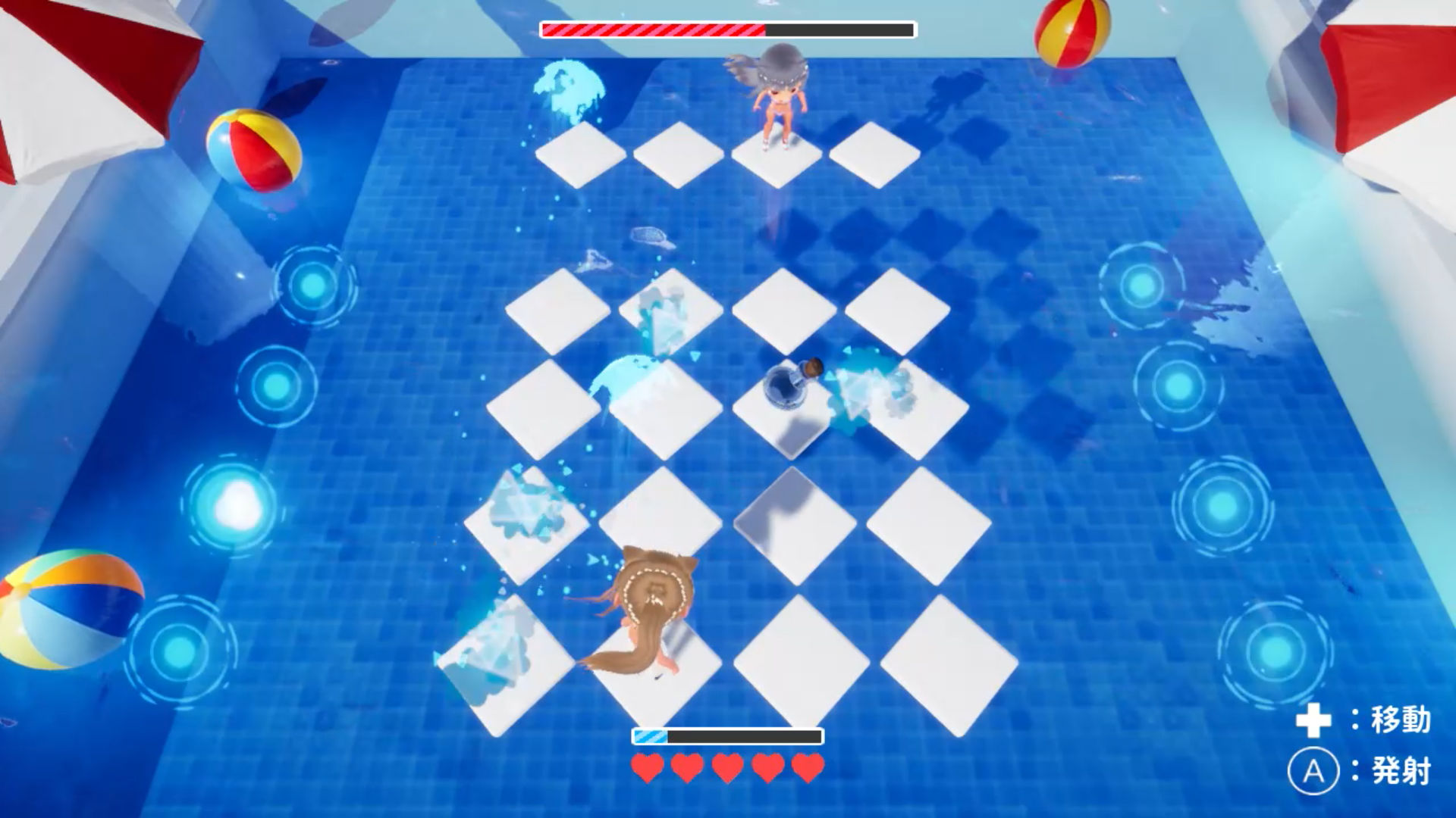 敵の攻撃を避けつつ、水を撃って敵のHPを